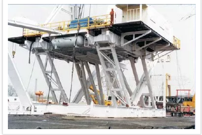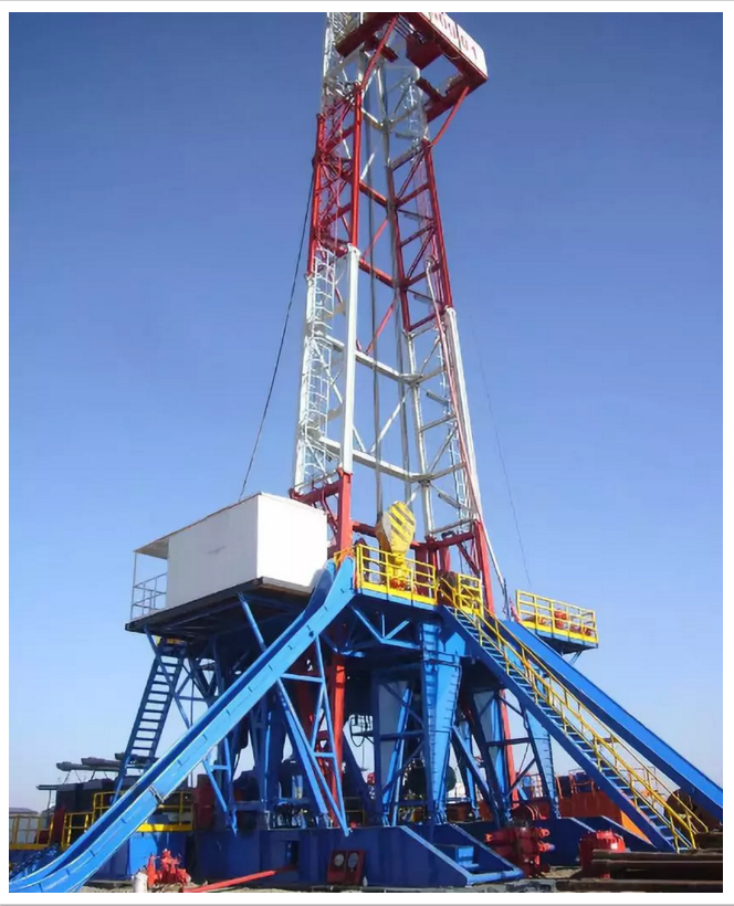 井架和底座用來支撐和安裝各鉆井設(shè)備和工具、提供鉆井操作場(chǎng)所。井架用來安裝天車、懸掛游車、大鉤、水龍頭和鉆具,承受鉆井工作載荷,排放立根;底座用來安裝動(dòng)力機(jī)組、絞車、轉(zhuǎn)盤、支撐井架,借助轉(zhuǎn)盤懸持鉆具,提供轉(zhuǎn)盤和地面之間的高度空間,以安裝必要的防噴器和便于泥漿循環(huán)。