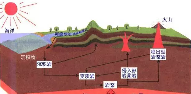 沉積巖的形成大體經歷以下幾個過程:沉積物的形成—母巖的風化作用、風化產物的搬運和沉積作用、沉積物的成巖作用。
